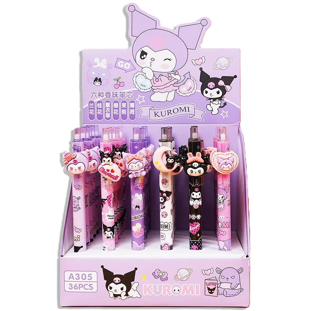 🖤📦 Caja x36 Biromes Gel Retráctiles Kuromi – Brilli Deco Mayorista 📦🖤