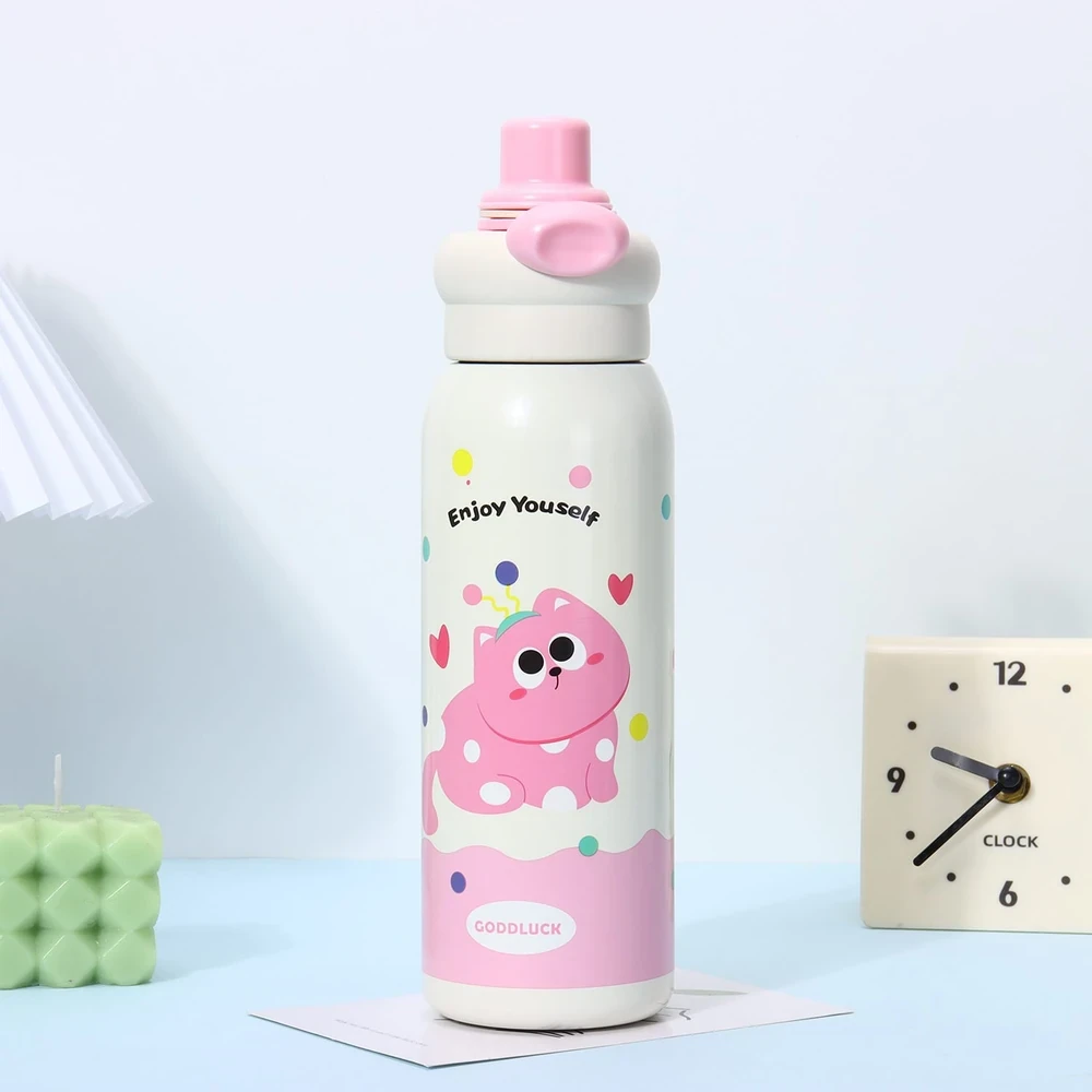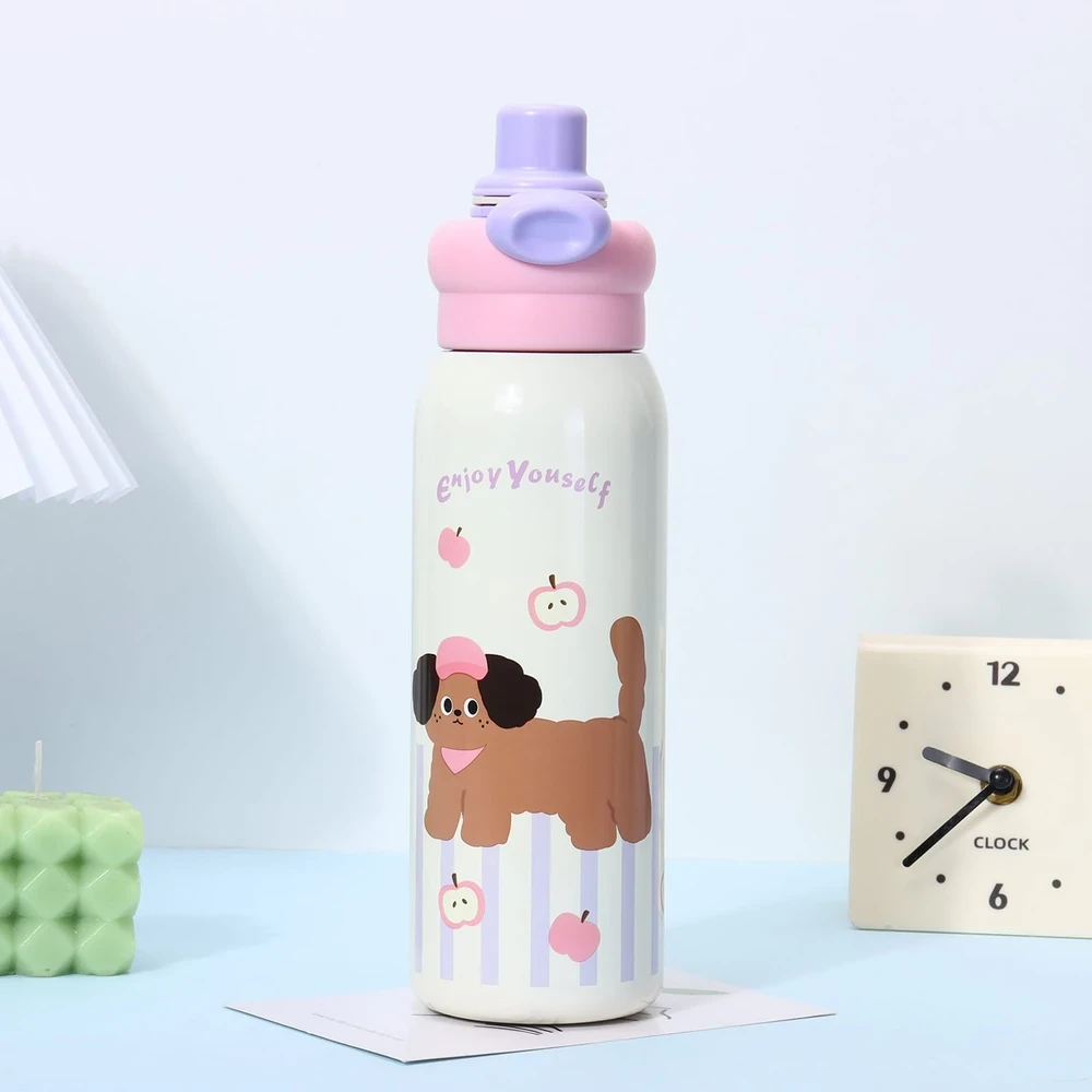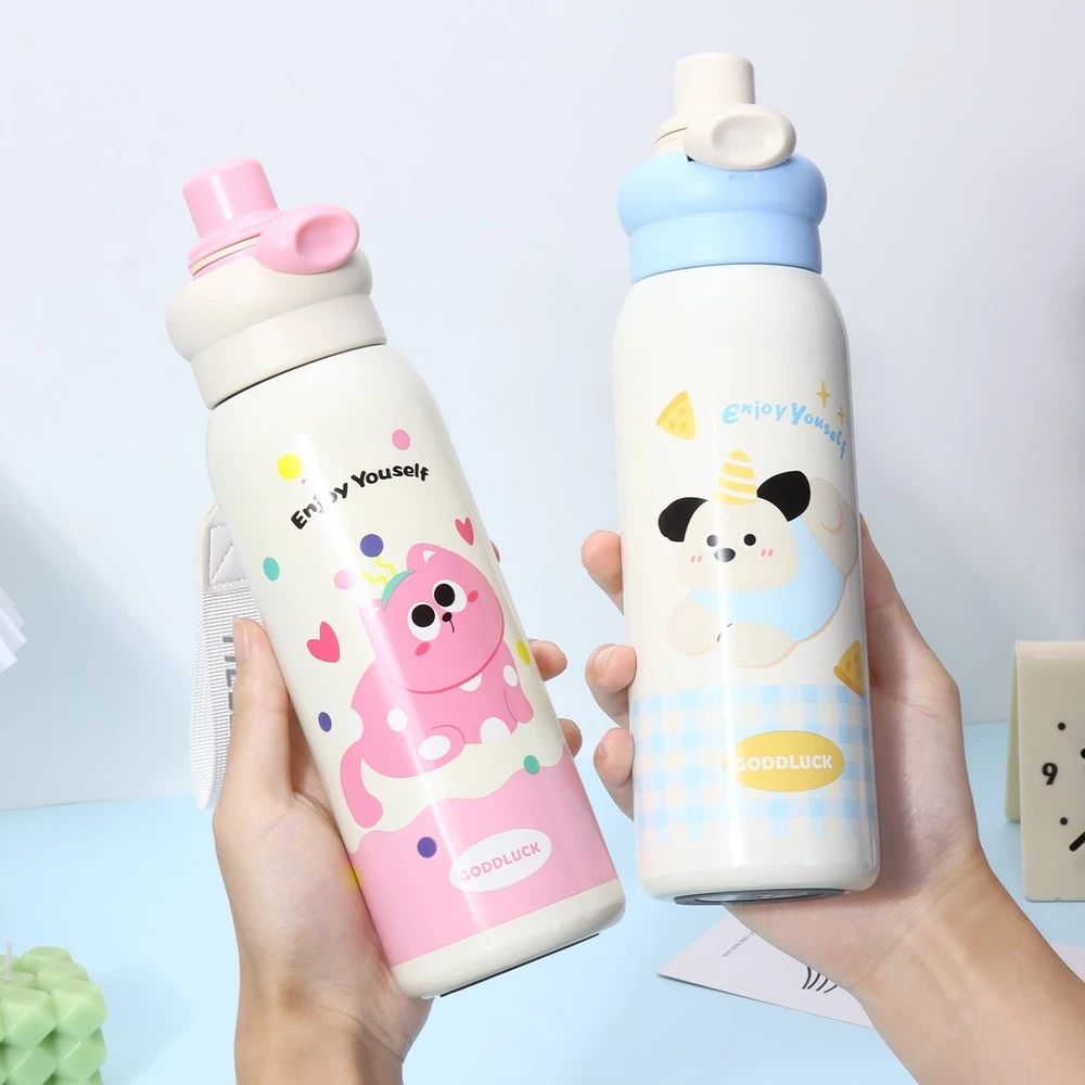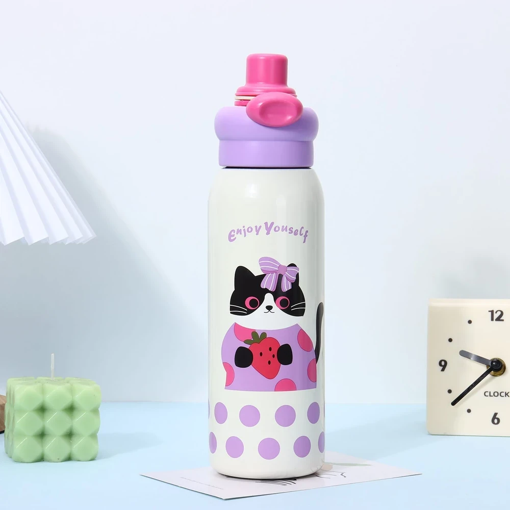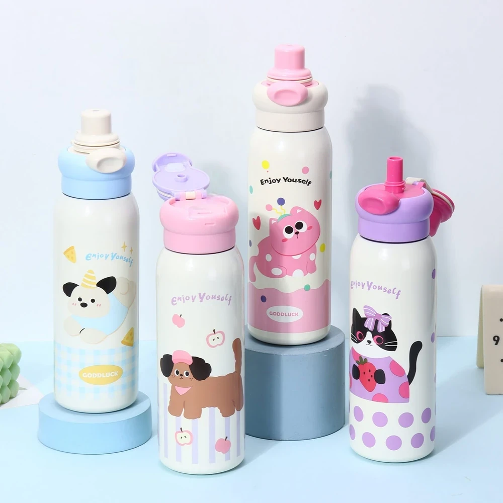 Botellas de acero inoxidable 650ml con diseños adorables 🐱🐶. Disponibles en 4 modelos: dos con gatitos y dos con perritos, en distintos colores para elegir tu favorita 🌈💖.