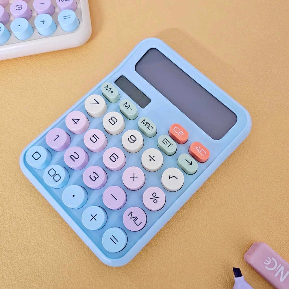 Calculadora solar pastel de 12 dígitos, con diseño redondeado y botones en tonos suaves súper cute 💙🌈✨