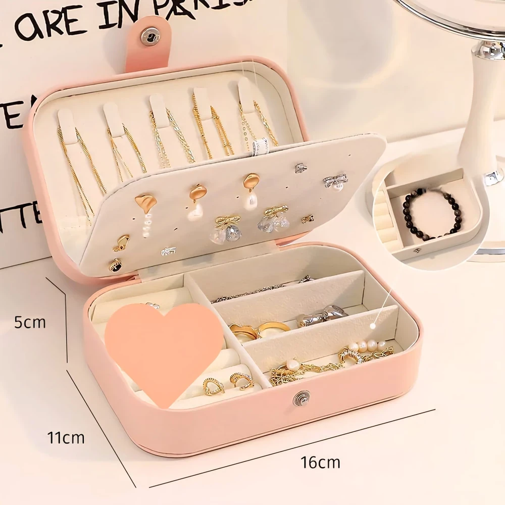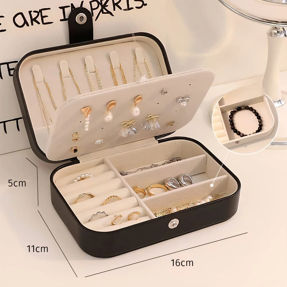 Cuenta con compartimentos y ranuras especiales que facilitan la búsqueda y protegen cada joya. Su exterior resistente y el forro interior suave 🩷 cuidan tus accesorios del polvo, arañazos y golpes.