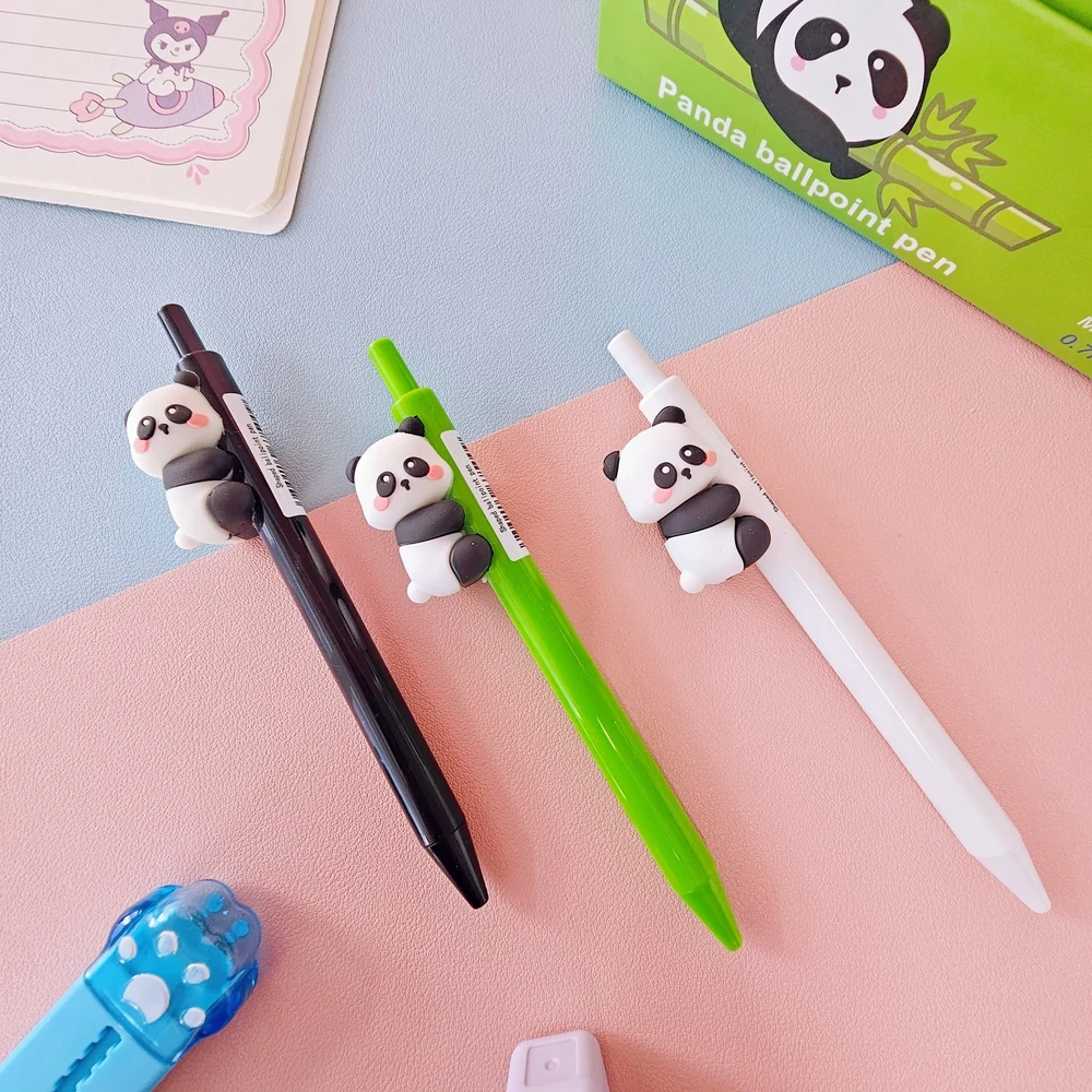 ¡La ternura se vuelve útil! ✨ Estas biromes retráctiles traen un adorable pandita decorativo en la parte superior y vienen en tres colores súper cute 💚🤍🖤
