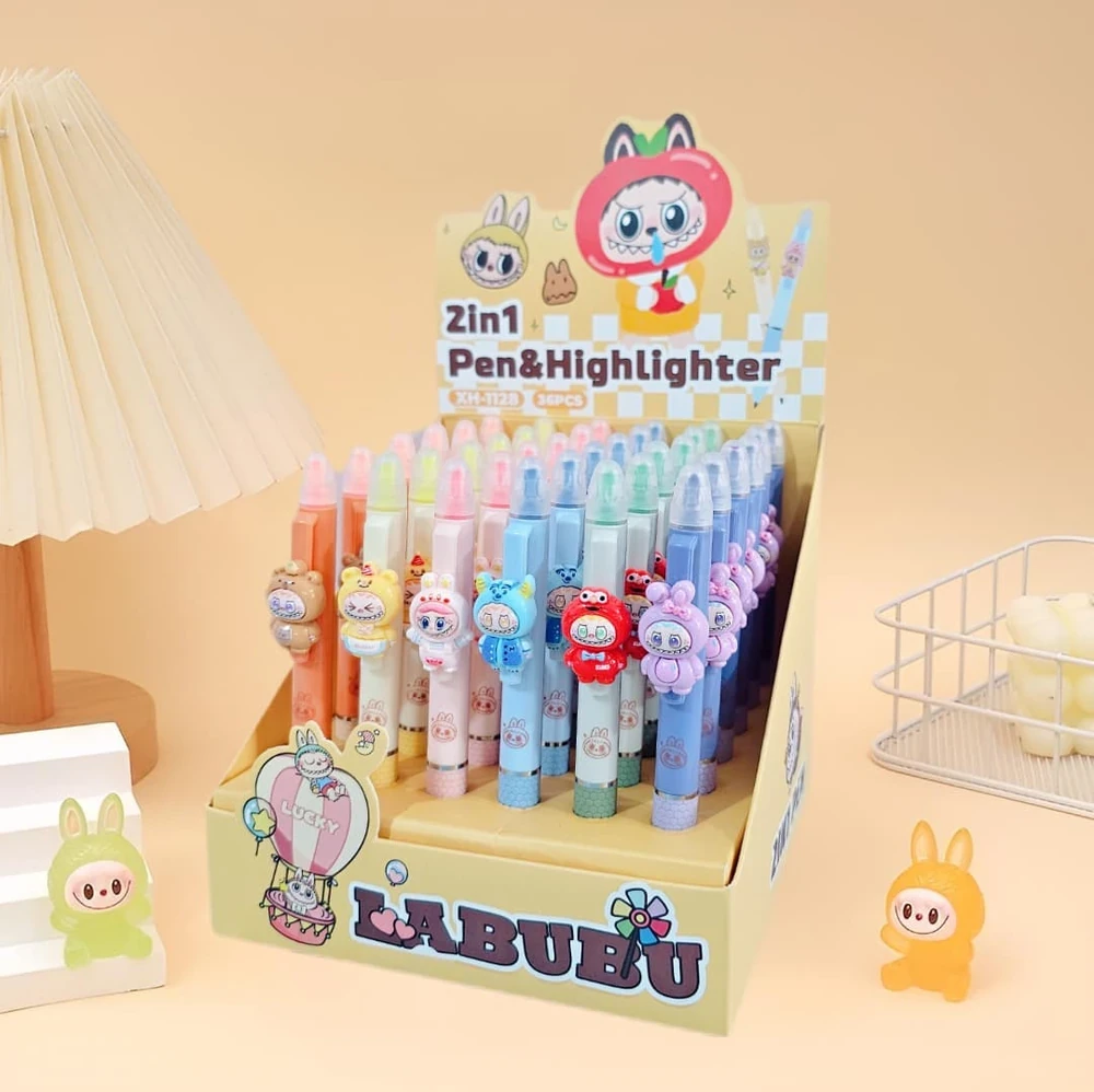 📦 Lapicera con Resaltador "Labubu" – Caja x36