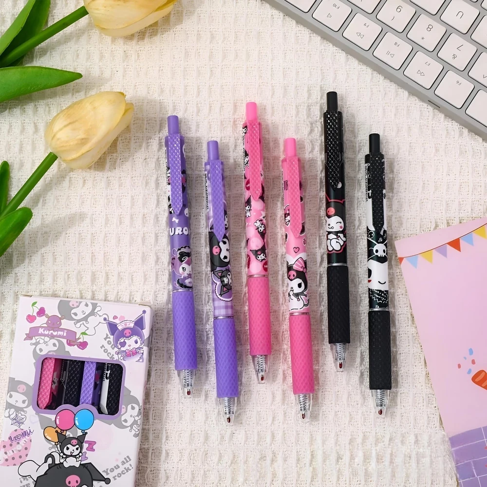 ¡✍️ Escritura con actitud y estilo kawaii! Este pack incluye 6 biromes Kuromi con tinta negra gel suave y mecanismo retráctil.