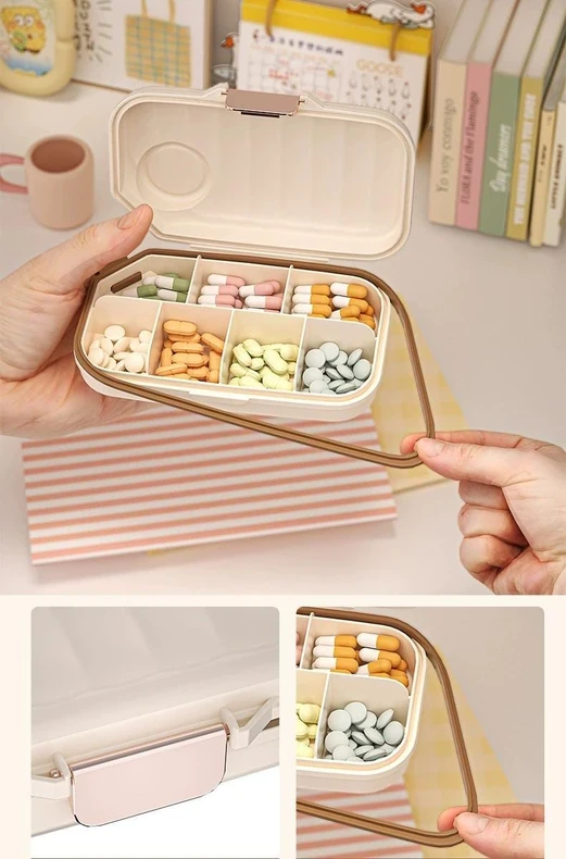 🧾💊 Organiza tus medicamentos de forma práctica y segura ✨. Este pastillero cuenta con varios compartimentos independientes, ideales para clasificar y almacenar diferentes dosis por separado 🙌. Cada espacio está pensado para contener la cantidad justa, ayudándote a tomar la píldora correcta en el momento indicado ⏰✅ ¡Olvídate de confusiones y mantén tu salud siempre en orden! 🌸🌟
