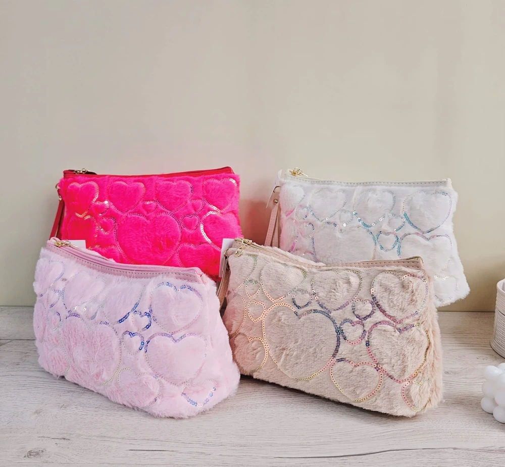💖✨ Portacosmético con diseño de corazones en lentejuelas ✨💖